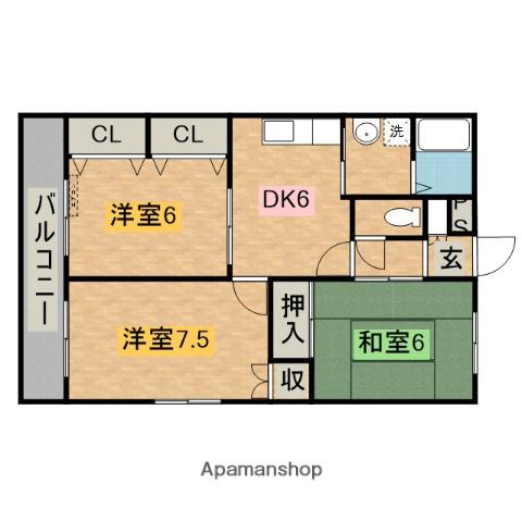 | 間取り詳細 | 洋室(7.5帖)、洋室(6帖)、和室(6帖)、DK(6帖) | ||