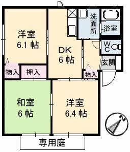 | 間取り詳細 | DK(6帖)、洋室(6.4帖)、洋室(6.1帖)、和室(6帖) | ||