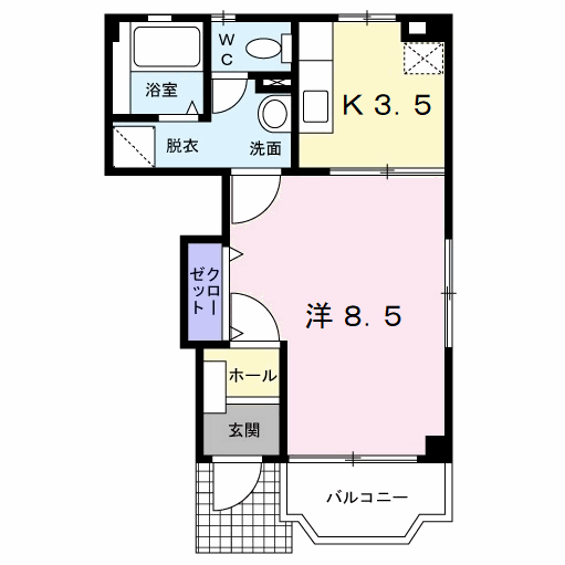 | 間取り詳細 | 洋室(8.5帖)、K(3.5帖) | ||