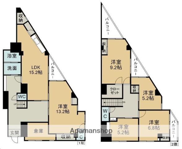 | 間取り詳細 | 洋室(9.2帖)、洋室(6.8帖)、洋室(5.2帖)、洋室(5.2帖)、洋室(13.2帖)、LDK(15.2帖) | ||