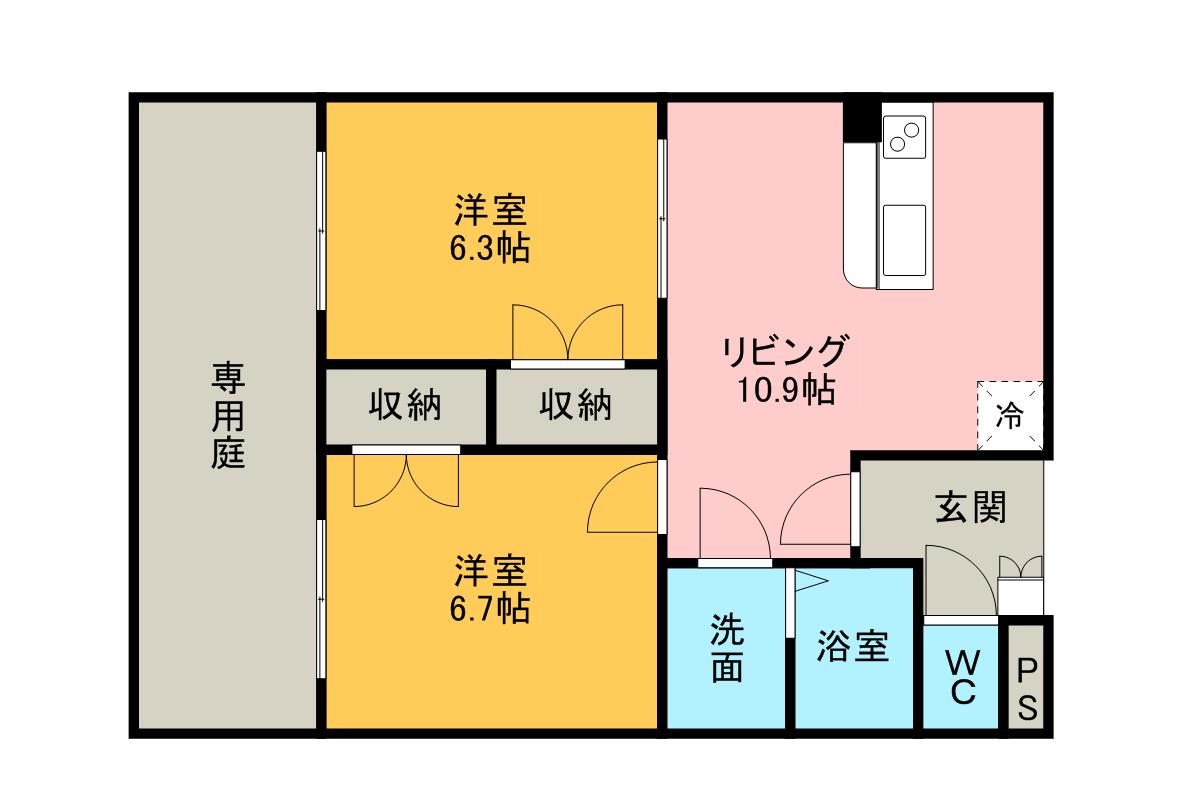 | 間取り詳細 | LDK(10.9帖)、洋室(6.3帖)、洋室(6.8帖) | ||