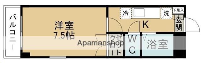 | 間取り詳細 | 洋室(7.5帖)、K(2帖) | ||