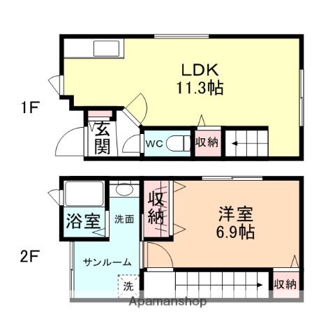 | 間取り詳細 | LDK(11.3帖)、洋室(6.9帖) | ||
