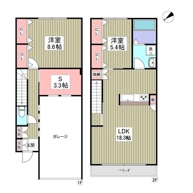| 間取り詳細 | LDK(18.3帖)、S(3.3帖)、洋室(8.6帖)、洋室(5.4帖) | ||