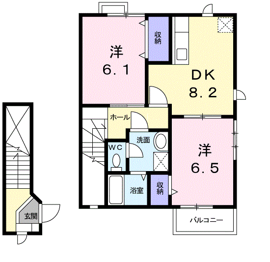 | 間取り詳細 | 洋室(6.1帖)、洋室(6.2帖)、DK(7.9帖) | ||