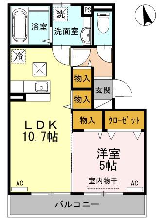 | 間取り詳細 | LDK(10.7帖)、洋室(5帖) | ||