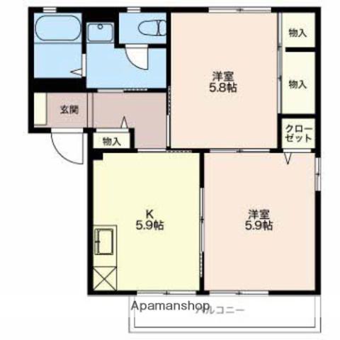 | 間取り詳細 | 洋室(5.8帖)、洋室(5.9帖)、K(5.9帖) | ||