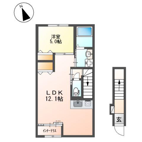 | 間取り詳細 | 洋室(5帖)、LDK(12.1帖) | ||