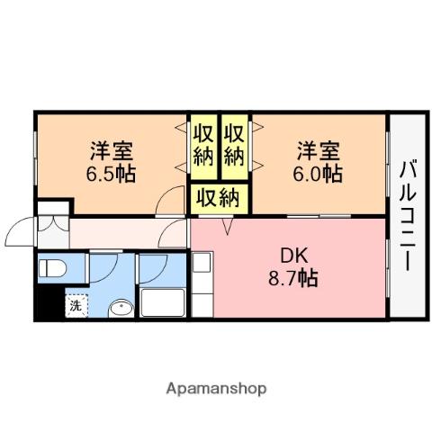 | 間取り詳細 | DK(8.7帖)、洋室(6.5帖)、洋室(6帖) | ||