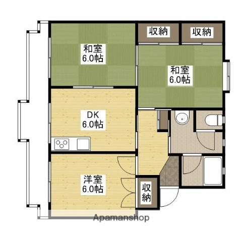 | 間取り詳細 | DK(6帖)、和室(6帖)、和室(6帖)、洋室(6帖) | ||
