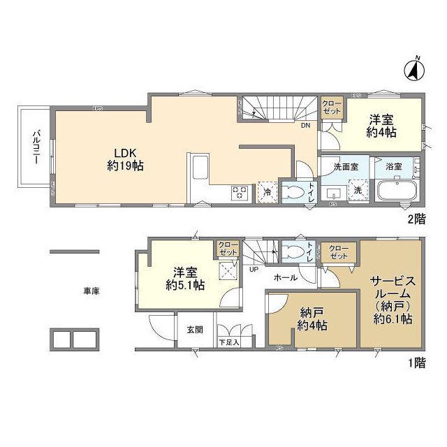| 間取り詳細 | LDK(19帖)、洋室(5.1帖)、洋室(4帖)、S(6.1帖)、S(4帖) | ||