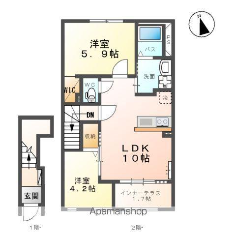 | 間取り詳細 | LDK(10帖)、洋室(4.2帖)、洋室(5.9帖) | ||