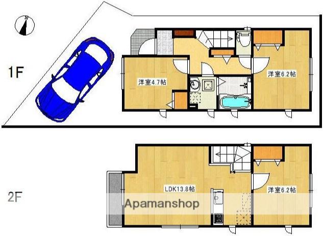 | 間取り詳細 | LDK(13.8帖)、洋室(6.2帖)、洋室(6.2帖)、洋室(4.7帖) | ||