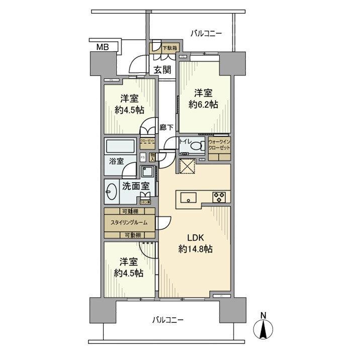 | 所在階 / 向き | 6階 / 南 | バルコニー面積 | 19m2 |