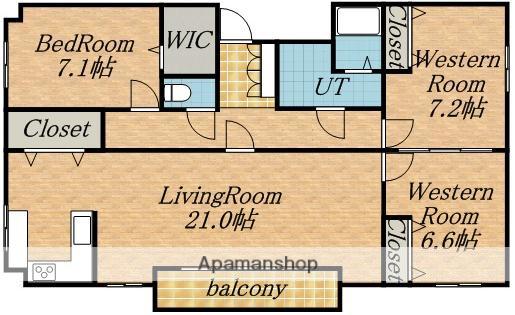 | 間取り詳細 | LDK(21帖)、洋室(7.1帖)、洋室(6.6帖)、洋室(7.2帖) | ||
