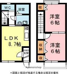 | 間取り詳細 | LDK(8.7帖)、洋室(6帖)、洋室(6帖) | ||