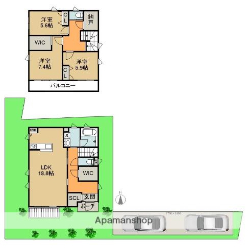 | 間取り詳細 | LDK(18.8帖)、洋室(5.6帖)、洋室(7.4帖)、洋室(5.9帖) | ||