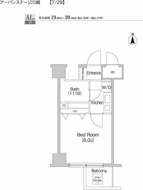 | 間取り | 1K | 専有面積 | 19.06m2 |