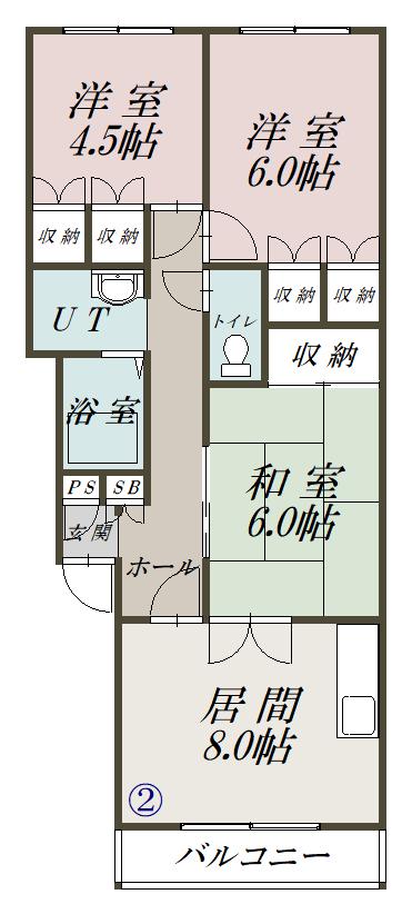 | 間取り詳細 | DK(8帖)、和室(6帖)、洋室(6帖)、洋室(4.5帖) | ||