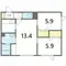 | 間取り詳細 | LDK(13.4帖)、洋室(5.9帖)、洋室(5.9帖) | ||