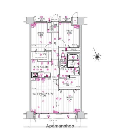 | 間取り詳細 | LDK(14.2帖)、洋室(5帖)、洋室(5帖)、洋室(5.5帖) | ||