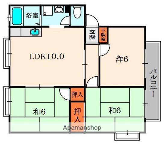 | 間取り詳細 | LDK(10帖)、和室(6帖)、和室(6帖)、洋室(6帖) | ||