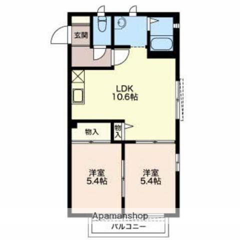 | 間取り詳細 | LDK(10.6帖)、洋室(5.4帖)、洋室(5.4帖) | ||