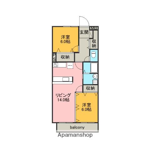 | 間取り詳細 | LDK(14帖)、洋室(6帖)、洋室(6帖) | ||