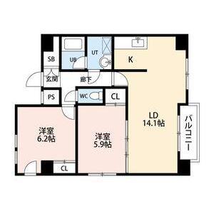| 間取り詳細 | LDK(14.1帖)、洋室(5.9帖)、洋室(6.2帖) | ||