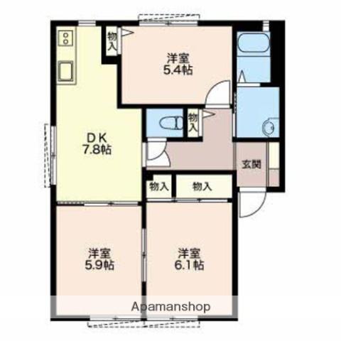 | 間取り詳細 | DK(7.8帖)、洋室(6.1帖)、洋室(5.9帖)、洋室(5.4帖) | ||