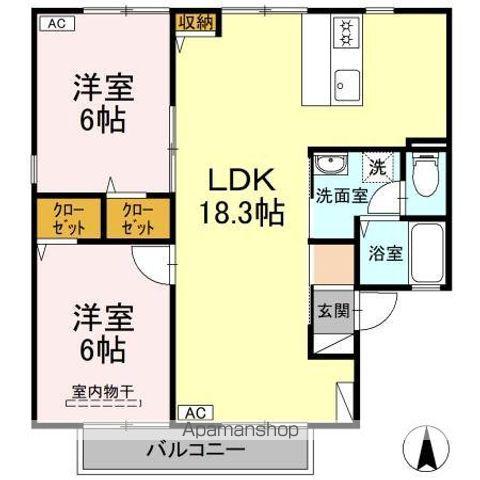 | 間取り詳細 | LDK(18.3帖)、洋室(6帖)、洋室(6帖) | ||