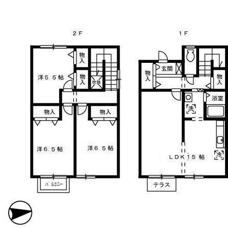 | 間取り詳細 | LDK(15帖)、洋室(5.5帖)、洋室(6.5帖)、洋室(6.5帖) | ||