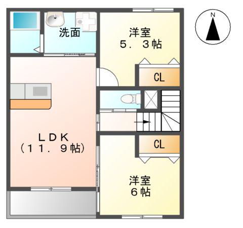 | 間取り詳細 | LDK(11.9帖)、洋室(6帖)、洋室(5.3帖) | ||