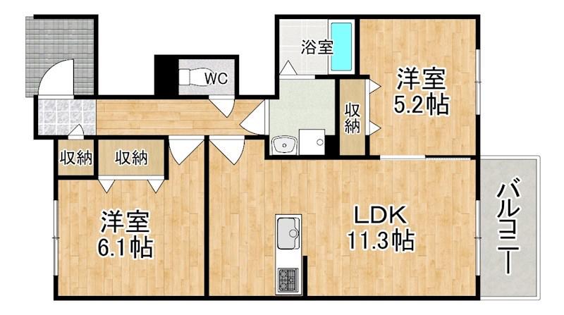 | 間取り詳細 | LDK(11.3帖)、洋室(6.1帖)、洋室(5.2帖) | ||
