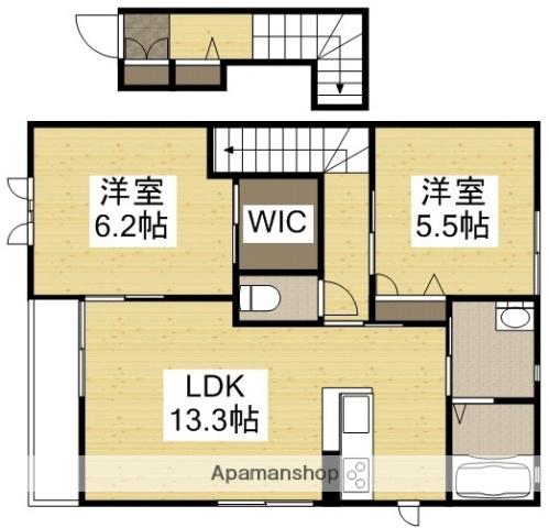 | 間取り詳細 | 洋室(6.2帖)、洋室(5.5帖)、LDK(13.3帖) | ||