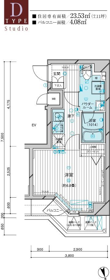 | 間取り | 1K | 専有面積 | 22.04m2 |