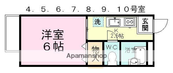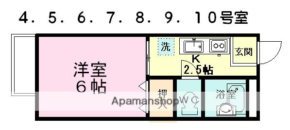 | 間取り詳細 | K(2.5帖)、洋室(6帖) | ||