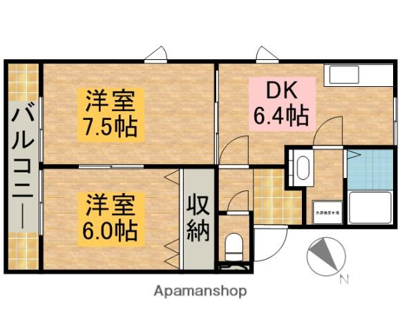 | 間取り詳細 | 洋室(6帖)、洋室(7.5帖)、DK(6.4帖) | ||