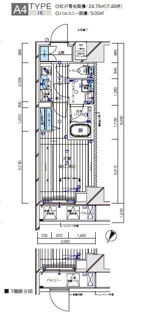 | 間取り | 1K | 専有面積 | 24.75m2 |