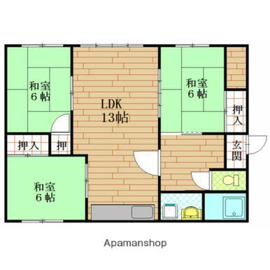 | 間取り詳細 | 和室(6帖)、和室(6帖)、和室(6帖)、LDK(13帖) | ||