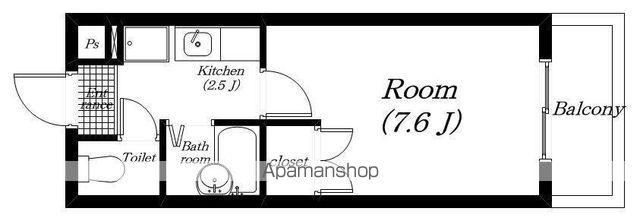 | 間取り詳細 | 洋室(7.6帖)、K(2.5帖) | ||