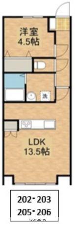 | 間取り詳細 | LDK(13.5帖)、洋室(4.5帖) | ||