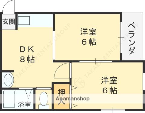 | 間取り詳細 | DK(8帖)、洋室(6帖)、和室(6帖) | ||