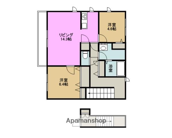 | 間取り詳細 | LDK(14.3帖)、洋室(6.4帖)、洋室(4.6帖) | ||