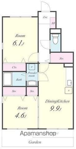| 間取り詳細 | 洋室(6.1帖)、洋室(4.6帖)、DK(9.9帖)、S(3.8帖) | ||