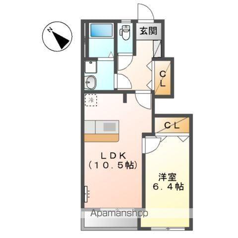 | 間取り詳細 | LDK(10.5帖)、洋室(6.4帖) | ||