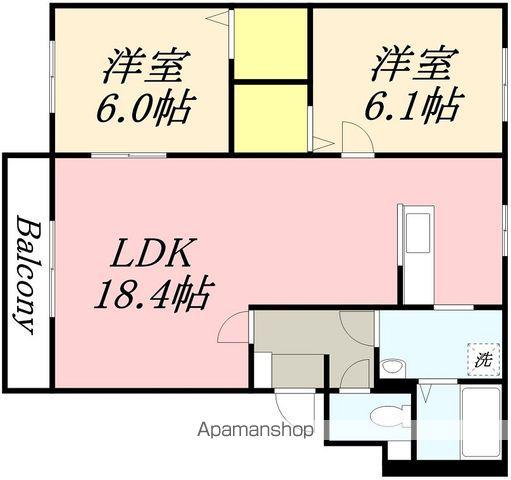 | 間取り詳細 | LDK(18.4帖)、洋室(6.1帖)、洋室(6帖) | ||