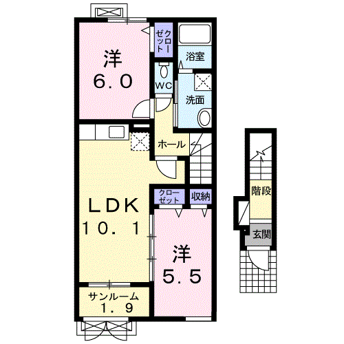 アパート インフィニティC(3LDK/2階) | |||||||