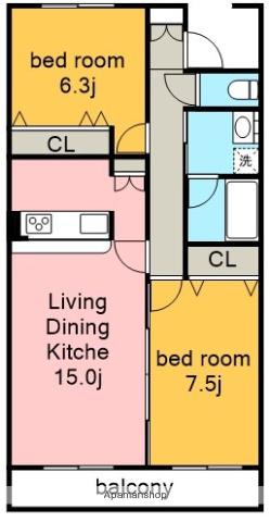 | 間取り詳細 | LDK(15帖)、洋室(7.5帖)、洋室(6.3帖) | ||