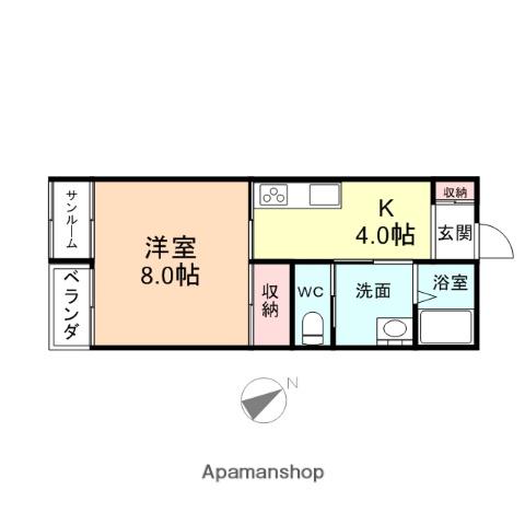 | 間取り詳細 | 洋室(8帖)、K(4帖) | ||